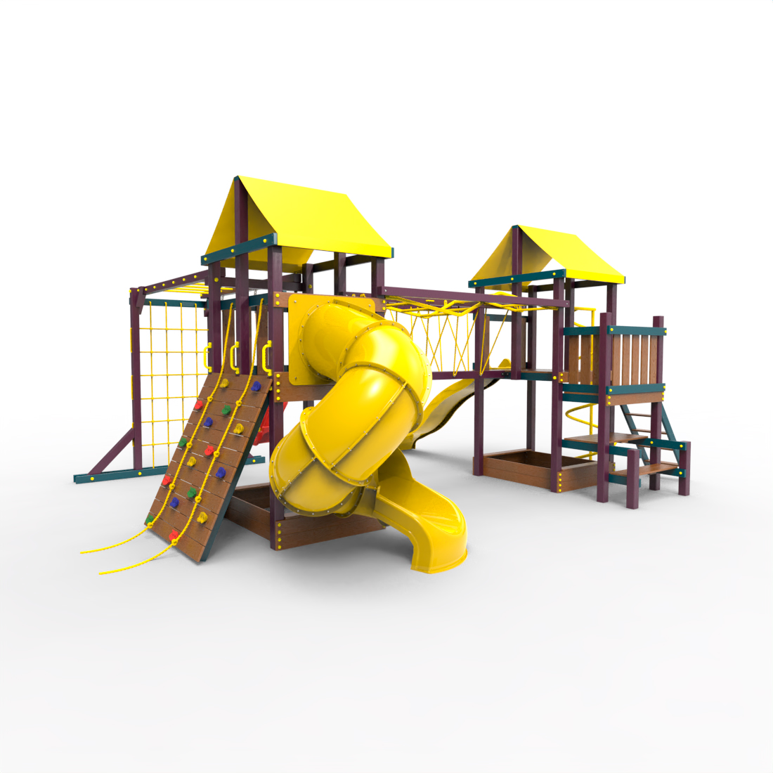 | Комплектация | Два домика|Песочница|Лестница|Шторм-трап|Скалодром|Рукоход|Руфер|Балкон|Столик с лавочками|Подвесной мост|Горка|Спираль|Сеть для лазания|Качели|Заливная горка|ЗигЗаг|Переправа |