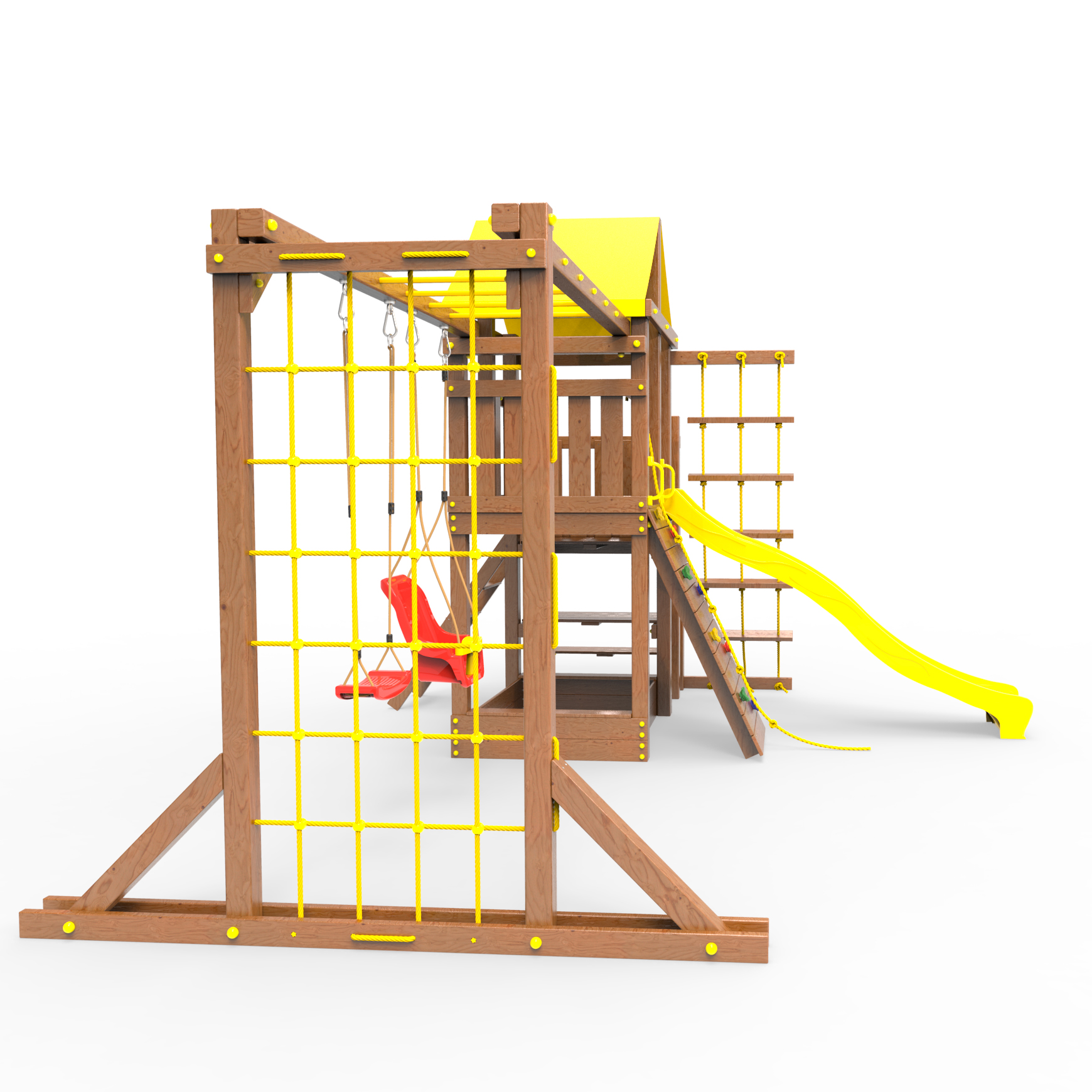 | Комплектация | Домик|Песочница|Лестница|Шторм-трап|Скалодром|Балкон|Столик с лавочками|Горка|Качели|Рукоход|Руфер|Сеть для лазания |
