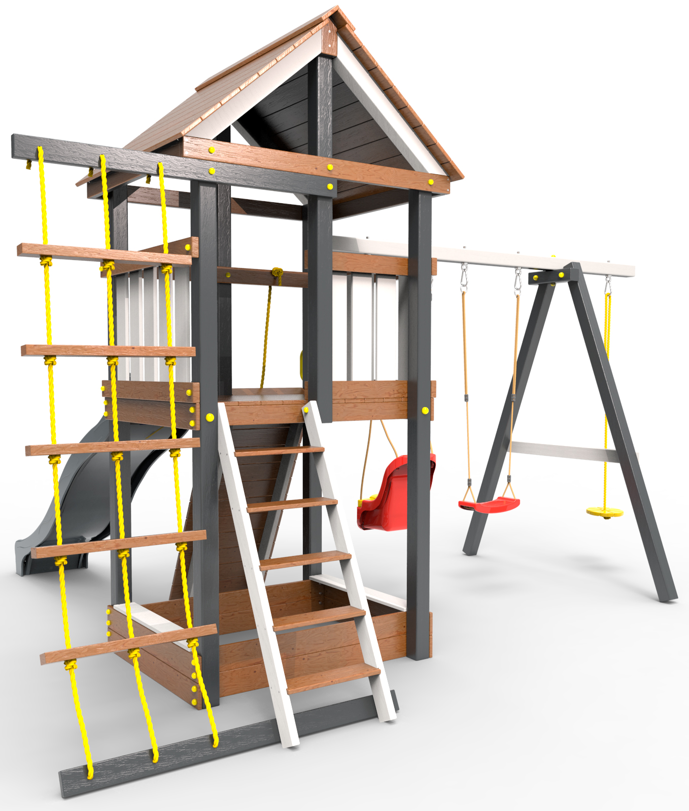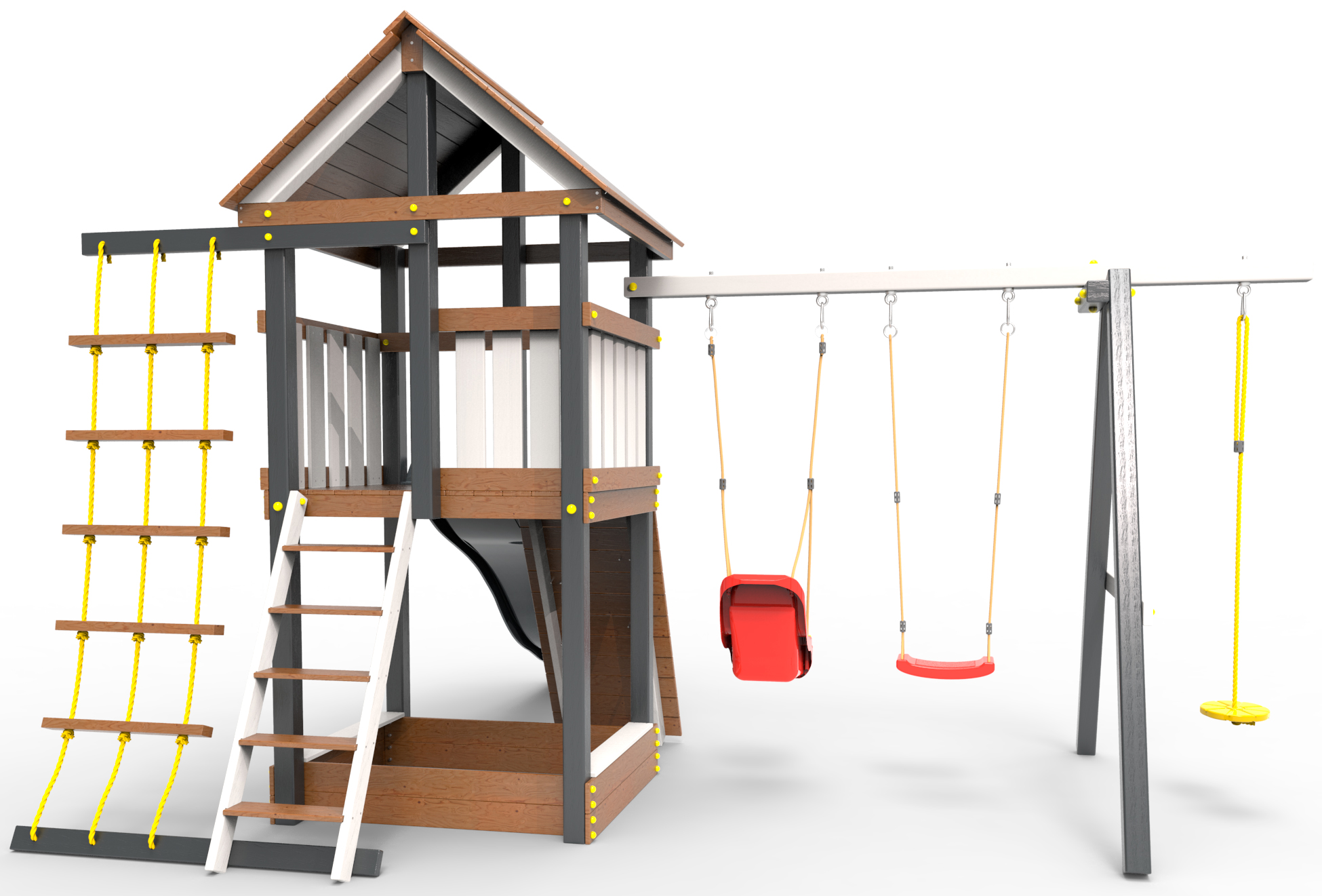 Обращаем Ваше внимание, что фактический цвет детской площадки может отличаться от представленных фото на сайте. Специфика окраски нетоксичными пропитками и красителями допускает отклонения в цветовой гамме отгружаемых изделий. Также обратите внимание, что фактический цвет может отличаться из-за цветопередачи устройства на котором Вы смотрите фото.
