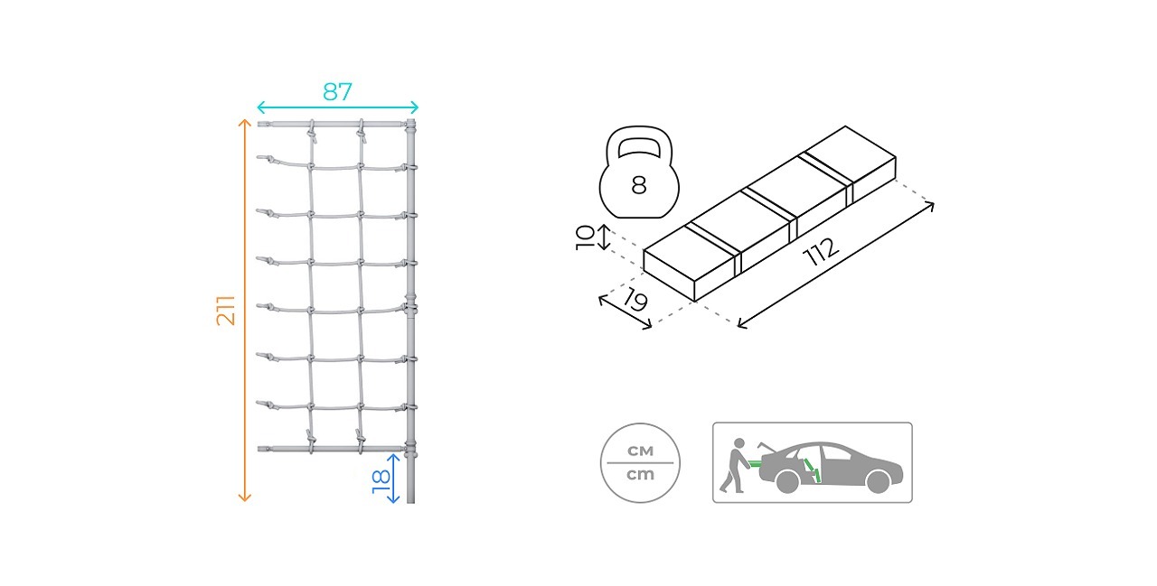 Комплект с канатным лазом подойдет к пристенному детскому спортивному комплексу ROMANA с 8 ступенями. Его можно разместить как слева, так и справа от лестницы. Лаз добавит разнообразия к веселым играм детей, даст больше возможностей для упражнений. Он сделан из шнура повышенной прочности. Комплект фиксируется с помощью специальных крепежей.