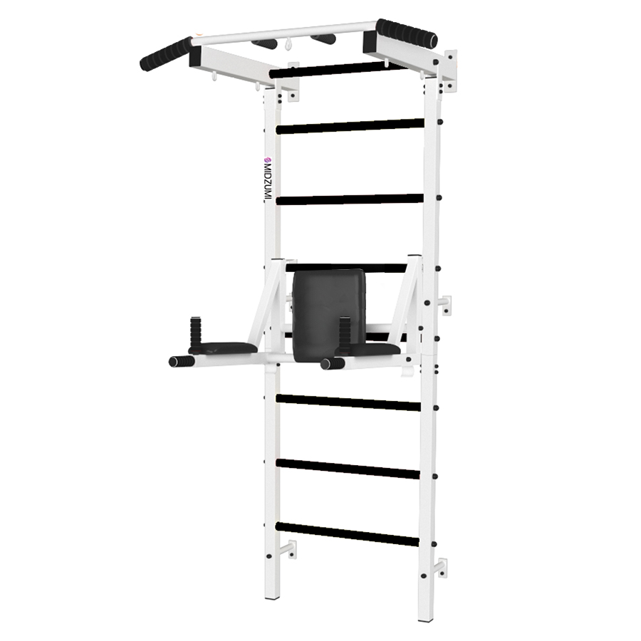 Модель из профессиональной серии Mdzumi станет не просто личным тренером, но и займет достойное место в любом интерьере вашего дома. Легкий бело-черный дизайн понравится как мужчинам так и женщинам. Металлическая шведская стенка имеет турник и брусья-держатель штанги, которые крепятся к спортивному комплексу и позволяют выполнить множество упражнений, на развитие мышц пресса и рук. Легко собирается и при необходимости может быть дооборудован любыми аксессуарами (Предусмотрены специальные проушины для крепления любых снарядов и аксессуаров). Прочная металлическая конструкция позволяет выдерживать до 250 кг. Рассчитан в первую очень на занятия взрослому, но возможно заниматься и ребенку.